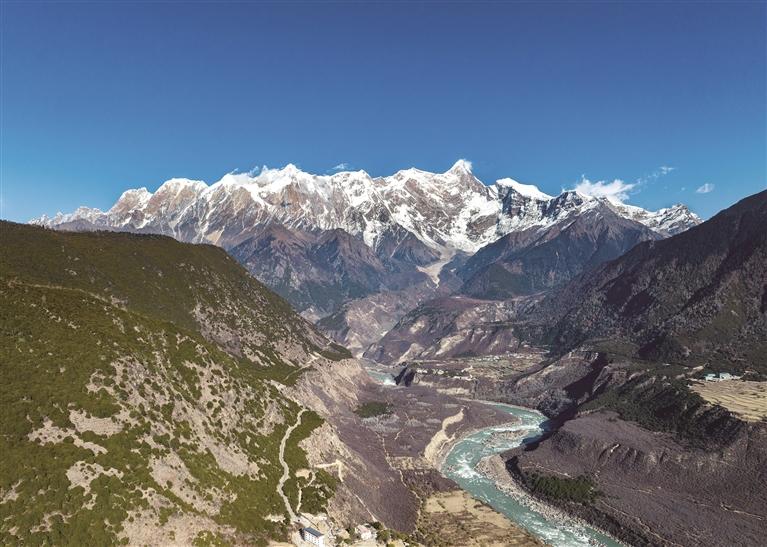 བོད་ལྗོངས་ཉིང་ཁྲི་གྲོང་ཁྱེར་སྨན་གླིང་རྫོང་ཕད་གྲོང་རྡལ་ཟུར་གསུམ་གྲོང་ཚོར་ཡར་ཀླུང་གཙང་པོའི་གྲོག་རོང་ཆེན་པོ་རྔམ་བརྗིད་ཆེ་ཞིང་། ཡུལ་མིའི་སྡོད་ཁང་དང་། བགྲོད་ལམ། གངས་རི། གདོད་མའི་ནགས་ཚལ་བཅས་གཅིག་ལ་གཅིག་རྒྱན་ལྟར་དུ་སྣང་ནས། བརྗིད་ཆགས་ལྟ་ན་སྡུག་པའི་གྲོག་རོང་གི་སྐྱེ་ཁམས་མཛེས་རིས་ཤིག་གྲུབ་ཡོད།