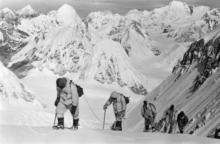 ཀྲུང་གོའི་རི་འཛེག་རུ་ཁག་གི་རུ་མི་མཐོ་ཚད་ལ་རྒྱ་མཚོའི་ངོས་ལས་སྨི7150ཡོད་པའི་གངས་འཁྱགས་ཀྱིས་བསྡམས་པའི་རི་ལྡེབས་སུ་བསྐྱོད་པ། པར་འདི་ནི1960ལོའི་ཟླ5པར་བླངས་པ་རེད།