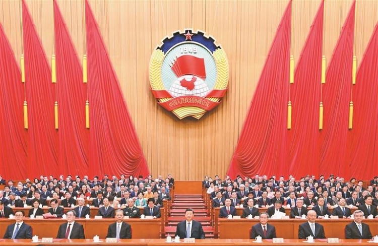 ཟླ་3ཚེས་11ཉིན་གྱི་སྔ་དྲོར། ཀྲུང་གོ་མི་དམངས་ཆབ་སྲིད་གྲོས་མོལ་ཚོགས་འདུ་སྐབས་བཅུ་བཞི་པའི་རྒྱལ་ཡོངས་ཨུ་ཡོན་ལྷན་ཁང་གི་ཚོགས་འདུ་ཐེངས་བཞི་པ་པེ་ཅིང་མི་དམངས་ཚོགས་ཁང་ཆེ་མོར་གྲོལ་ཞིང་། འདི་ནི་ཞི་ཅིན་ཕིང་དང་། ལི་ཆང་། ཀྲའོ་ལེ་ཅི། ཚའེ་ཆི། ཏིང་ཤུའེ་ཞང་། ལི་ཞི། ཧན་ཀྲེང་བཅས་ཀྲུའུ་ཞི་སྡིངས་ཆའི་ཐོག་བཞུགས་ཡོད་པ།