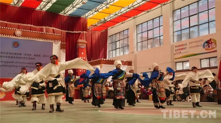 “གསར་བརྗེའི་གླུ་གཞས་བཏང་ནས་བཅོས་སྒྱུར་ལ་བསྔགས། བཀའ་དྲིན་ཚོར་ཞིང་འབད་འབུངས་ཡར་བརྩོན་བྱེད”ཅེས་པའི་བྱེད་སྒོའི་ཁྲོད་མི་རིགས་ཁག་གི་མང་ཚོགས་ཚོས་གཟབ་མཆོར་ལེགས་པར་སྤྲས་ཏེ《གླུ་ཞིག་བླངས་ནས་ཏང་ལ་འབུལ》དང《པེ་ཅིང་གི་གསེར་གྱི་རི་ལ》སོགས་ཀྱི་འགྱུར་ཁུག་ལ་བརྟེན་ནས་ཏང་ལ་དགའ་ཞེན་དང་ཐུགས་རྗེ་ཆེ་ཞུ་ལུགས་མཚོན་པར་བྱས།