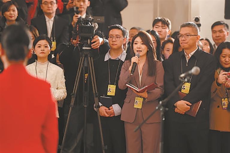 ཟླ་3ཚེས་4ཉིན་གྱི་ཕྱི་དྲོར། རྒྱལ་ཡོངས་སྲིད་གྲོས་སྐབས་བཅུ་བཞི་པའི་ཚོགས་འདུ་ཐེངས་བཞི་པའི“ཨུ་ཡོན་གྱི་བགྲོད་ལམ”གྱི་མཉམ་སྡེབ་བཅར་འདྲིའི་བྱེད་སྒོ་ཐོག་མ་མི་དམངས་ཚོགས་ཁང་ཆེ་མོར་སྤེལ་ཞིང་། ཚན་རྩལ་དང་། ཞིང་ལས། རིག་གནས་སྒྱུ་རྩལ་སོགས་ཁྱབ་ཁོངས་མང་པོ་ནས་ཕེབས་པའི་རྒྱལ་ཡོངས་སྲིད་གྲོས་ཀྱི་ཨུ་ཡོན་ཚོས་གསར་འགོད་པའི་བཅར་འདྲི་དང་ལེན་གནང་བ་རེད། འདི་ནི་མི་དམངས་ཉིན་རེའི་ཚགས་པར་གྱི་གསར་འགོད་པ་ཡན་དབྱི་ཆའོ་ཡིས་དྲི་བ་འདོན་བཞིན་པ།