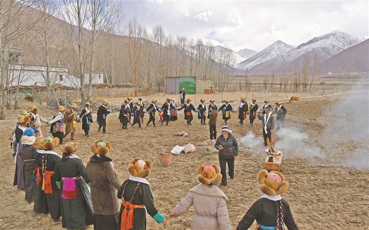 ཉེ་ཆར། ལྷ་ས་གྲོང་ཁྱེར་སྟག་རྩེ་ཆུས་དར་རྒྱས་ཤང་དར་རྒྱས་གྲོང་ཚོའི་ཞིང་ནང་དུ་ལོ་གཅིག་དུས་གཅིག་གི་དཔྱིད་རྨོད་མཛད་སྒོ་ཚ་ཚ་འུར་འུར་ངང་འཚོགས་ཤིང་། ས་གནས་ས་ཐོག་ཏུ་སྐར་ལྔའི་དར་དམར་བཏགས་པའི་འདྲུད་འཐེན་འཕྲུལ་འཁོར་དམར་པོ་བང་བསྒྲིགས་ནས་ཞིང་ནང་དུ་བསྐྱོད་དེ་དཔྱིད་རྨོད་ལས་ལ་བྲེལ། གྲོང་མི་ཚོས་ལུས་ལ་གཟབ་མཆོར་ལེགས་པར་སྤྲས་ཏེ་ཞིང་ནང་དུ་འཛོམས་ནས་ཕན་ཚུན་མཆོད་ཆང་བཀྱག་རེས་དང་ཁ་བཏགས་གཡོག་རེས་སོགས་ལོ་ངོ་སྟོང་རིང་རྒྱུན་འཛིན་བྱས་པའི་ཞིང་རྨོའི་སྲོལ་རྒྱུན་དེ་དེང་རབས་ཞིང་འཕྲུལ་དང་མཉམ་འདྲེས་ཡག་པོ་བྱས་ཡོད།